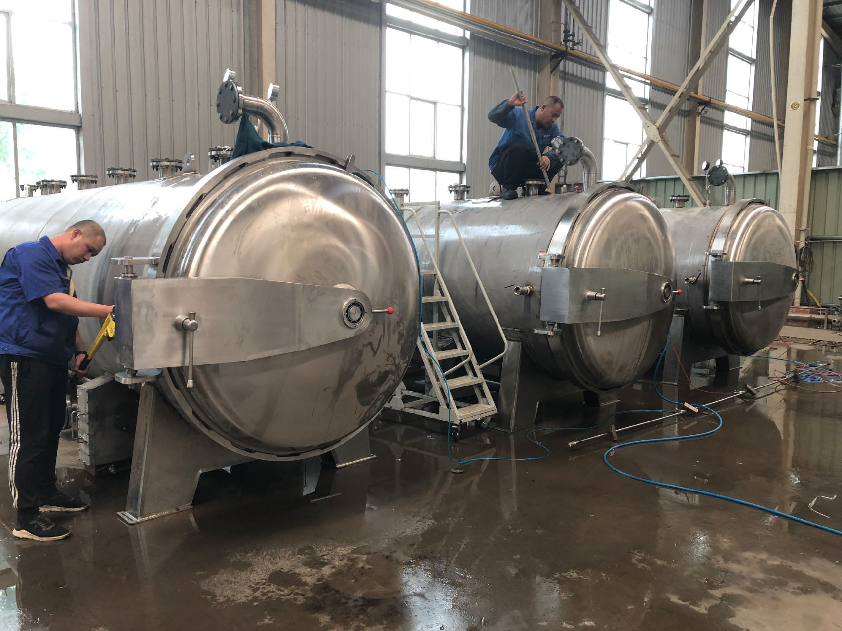 2. 消毒後,消毒プロセス水は,水資源と蒸気熱エネルギーを節約し,生産コストを削減するために,次のバッチのために上部タンクに戻ります.